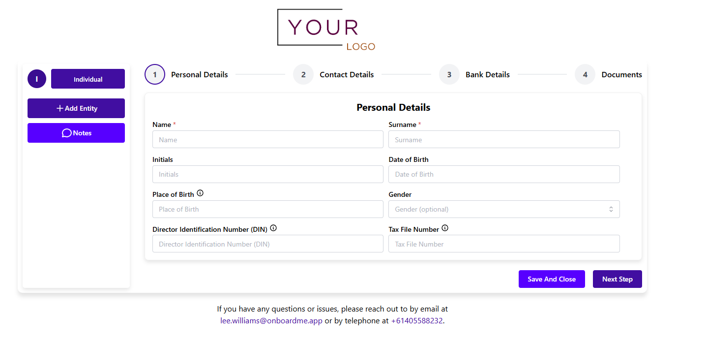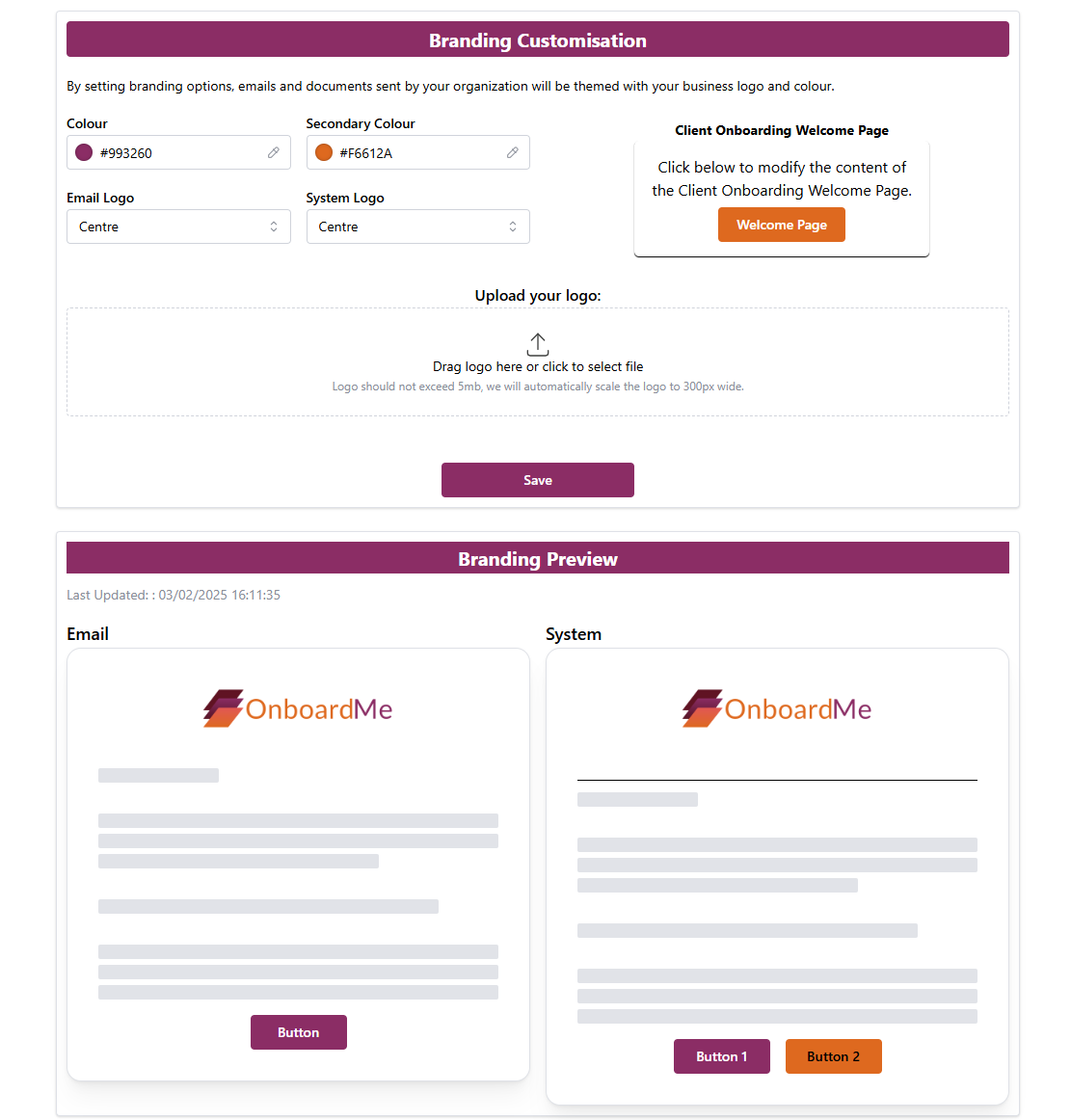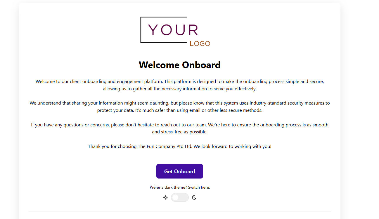 OnboardMe offers firms the ability to customise the OnboardMe platform, to reflect your brand identity and style.