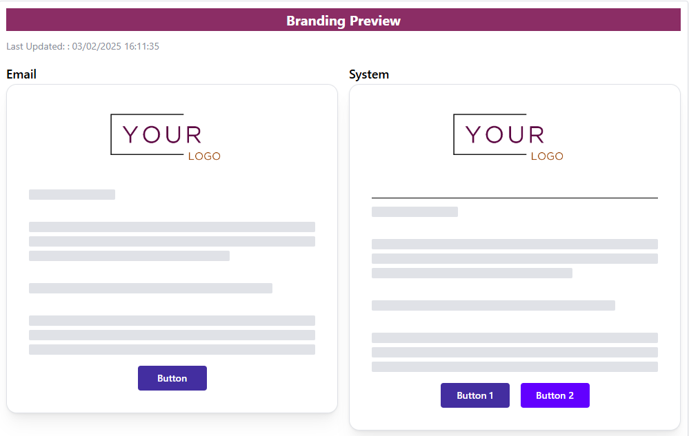 When selecting either Email or System logo alignment, the Branding Preview will update to display the change.