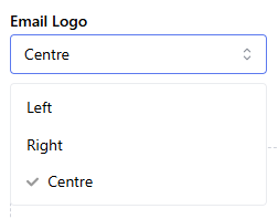You can choose between Left, Right and Centre for logo alignment for System as well as Emails.
