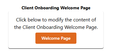 The Client Onboarding Welcome Page provides A space to add additional information to new clients, or to give tips or tricks that you think may be useful.