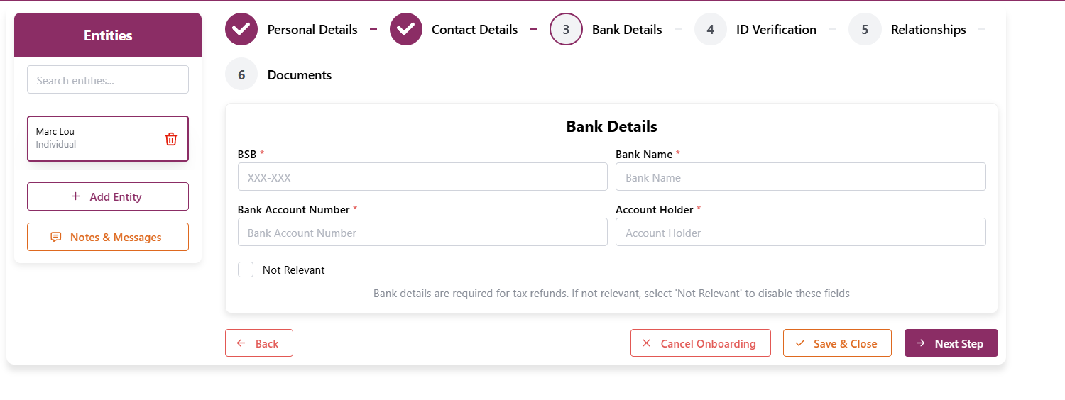 The "Bank Details Mandatory" field allows you to create a mandatory rule, that your clients have to submit their banking details during onboarding, which allows you to be on top of your receivables upon service completion.