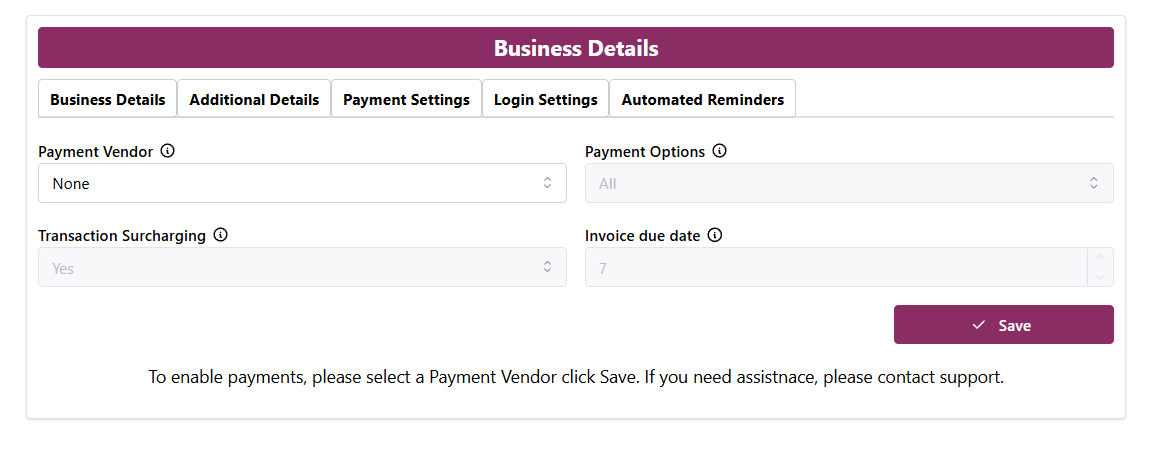Once your additional details have been completed, click on the next tab called "Payment Settings".