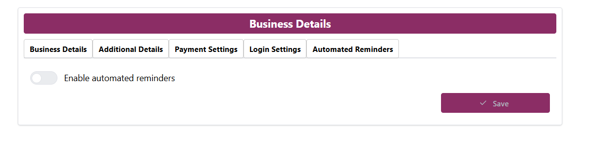 Once all your Login settings have been configured, click on Save and then click on "Automated Reminders".