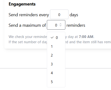 OnboardMe allows you to configure one or all modules to have automated reminders. We however impose some rules around these: you can only send a maximum of 5 automated reminders for each outstanding item.