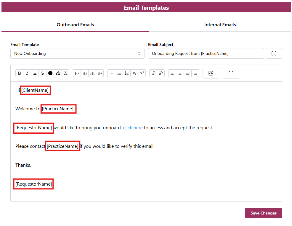OnboardMe have created the ability to customize templates for all requests that are sent to clients, in order for your practice to execute professionalism and to maintain consistency.