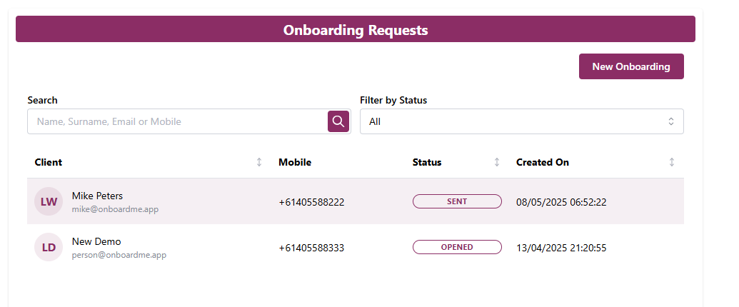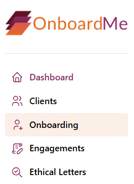 To send a new onboarding request, simply select the "Onboarding" from the menu.