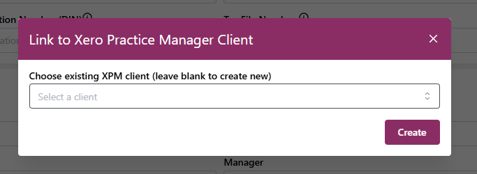 If there are XPM Clients who we previously chose not to insert into OnboardMe (due to them sharing an email with a client but us being unable to match them on name), a modal will show up asking if you want to link this client to an existing XPM client or create a new client in XPM.