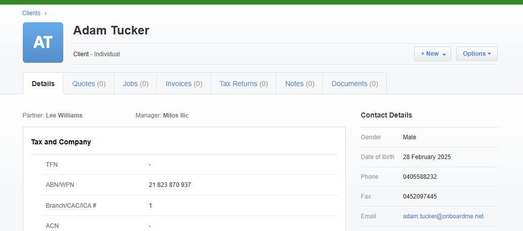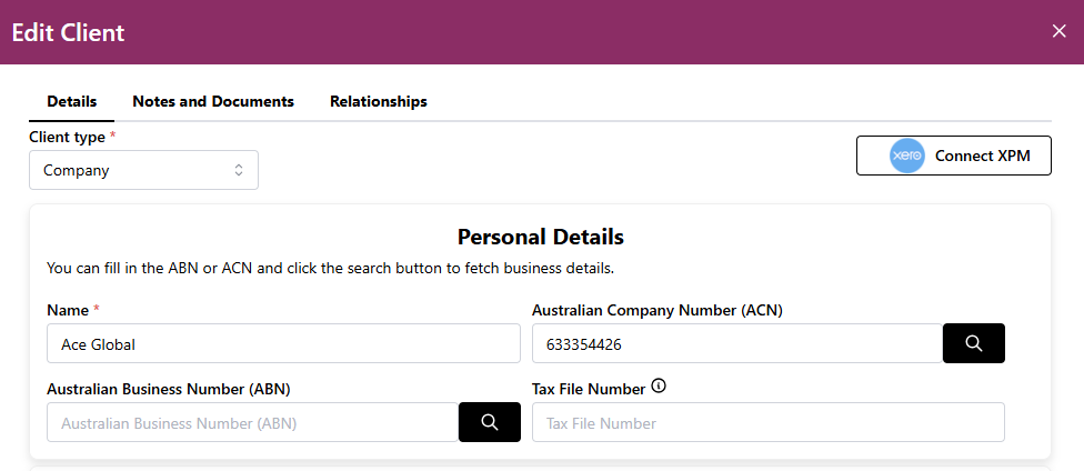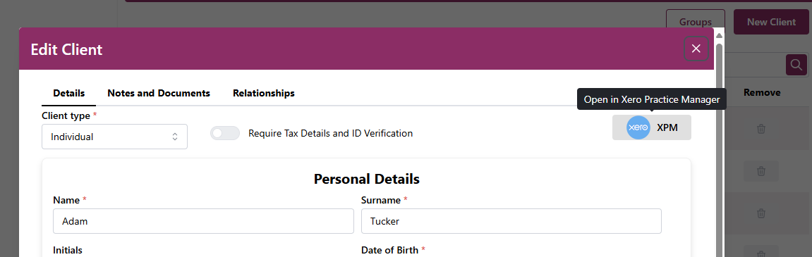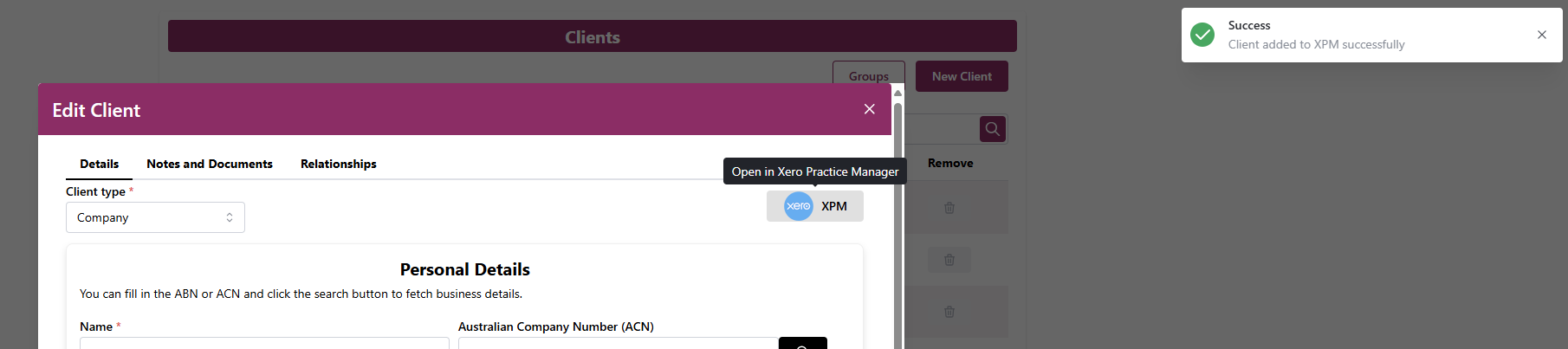 - Newly created clients in OnboardMe (manually created or created via client onboarding) will be checked against existing XPM clients and matched if possible. If no match is found, new clients are created in XPM