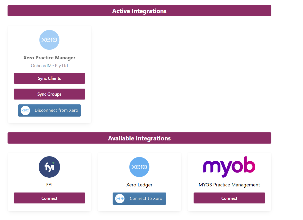 - Updates made to matched clients in XPM are downloaded into OnboardMe every 1hour