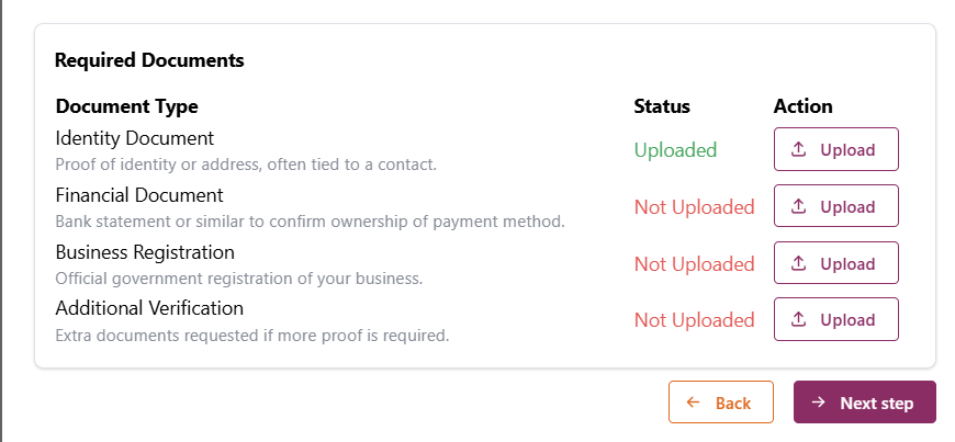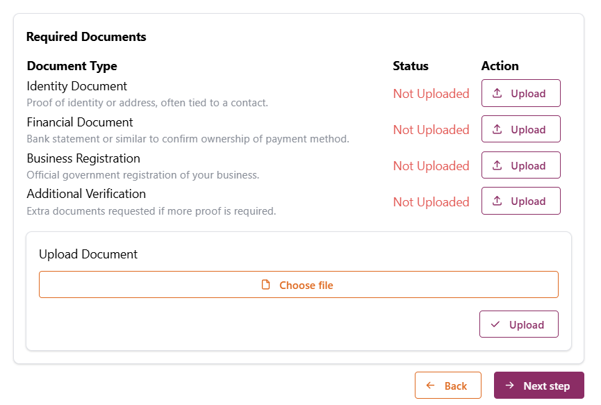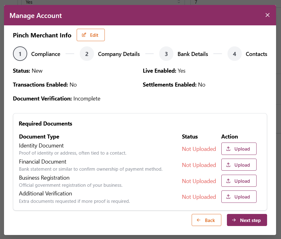 In order to confirm Identification, KYC and AML requirements, you will be required to upload information and documents into OnboardMe which are shared with Pinch.