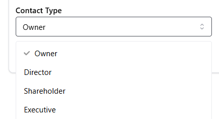 If you have multiple Business Owner / Directors, you will need to create contacts for them here and specify their Contact Types.