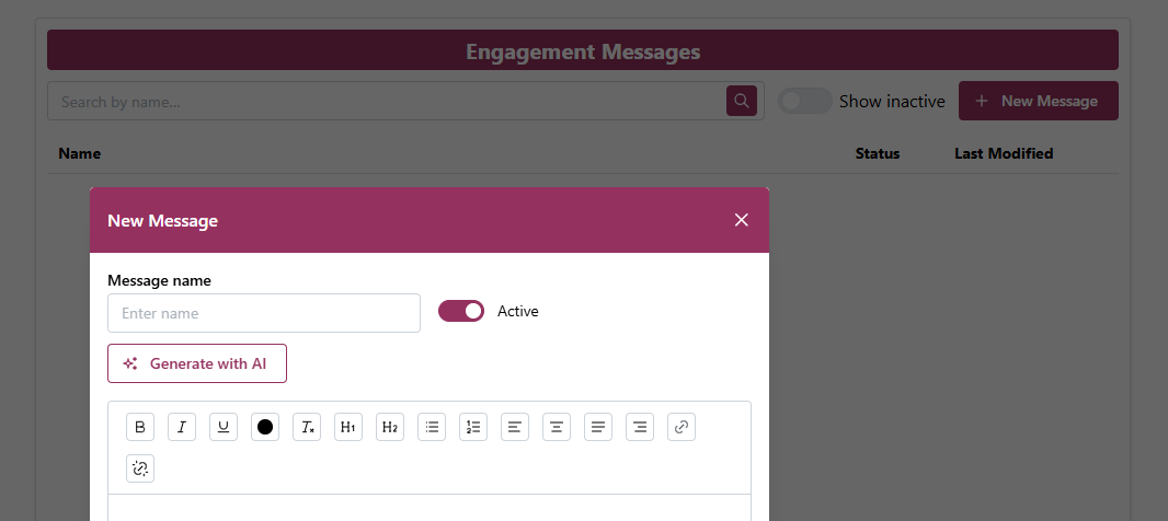 Engagement Message Templates can be setup under Templates / Engagement Messages.