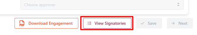 - A new Signatory History section is available for new engagements since the release. For active or completed engagements, click the View Signatories button inside of the engagement to open the Signatory modal.