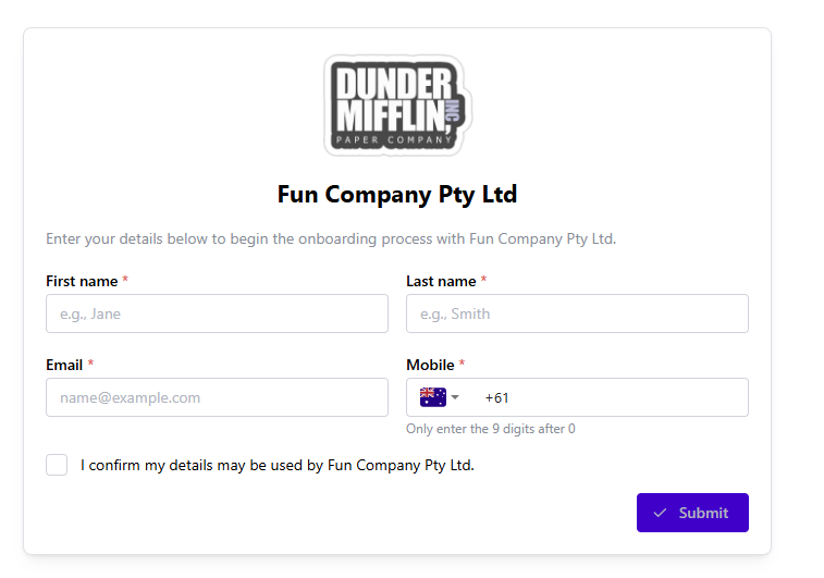 External Links can be set up by your business and hosted on your website or sent via email. When accessed, this link allows customers to start their own onboarding into the system.