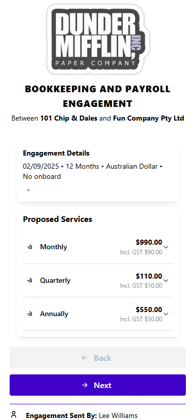 - Font Size and Style – We have added font styles and sizes to Engagement Terms to allow for greater customisation of your Engagement Terms.