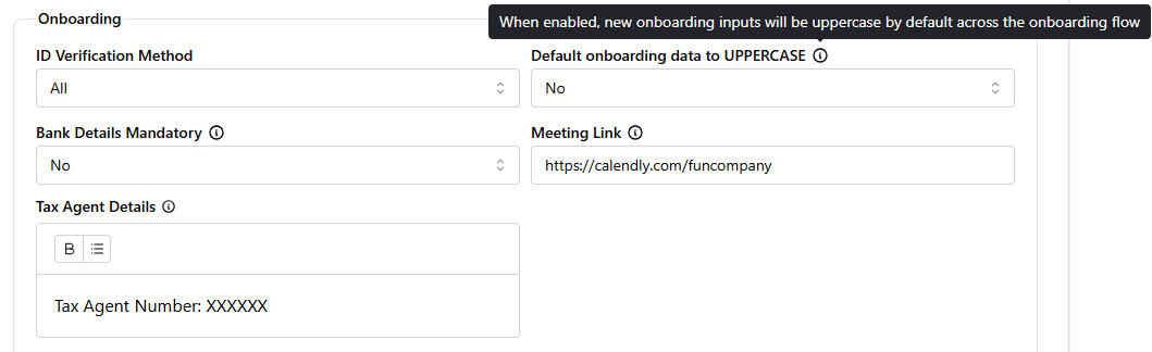 To assist firms who store their client data in uppercase in their practice management system, a new System Setting has been added which when enabled, will automatically convert onboarding data to uppercase as you progress through the review process.
