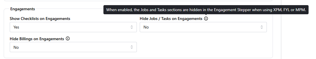 A new System Setting has been released to allow firms who don't use XPM Jobs or MYOB Tasks to hide this step from the Engagement setup process.