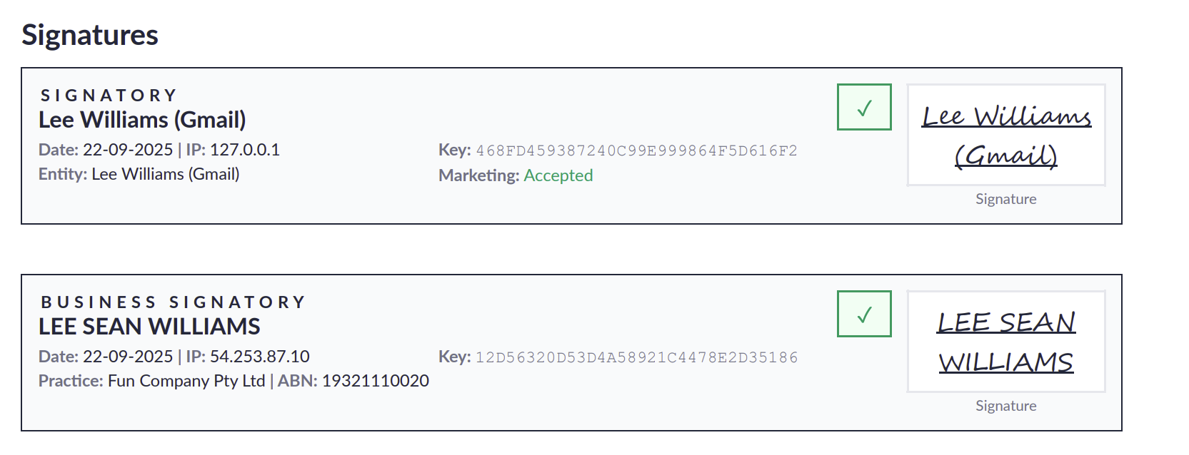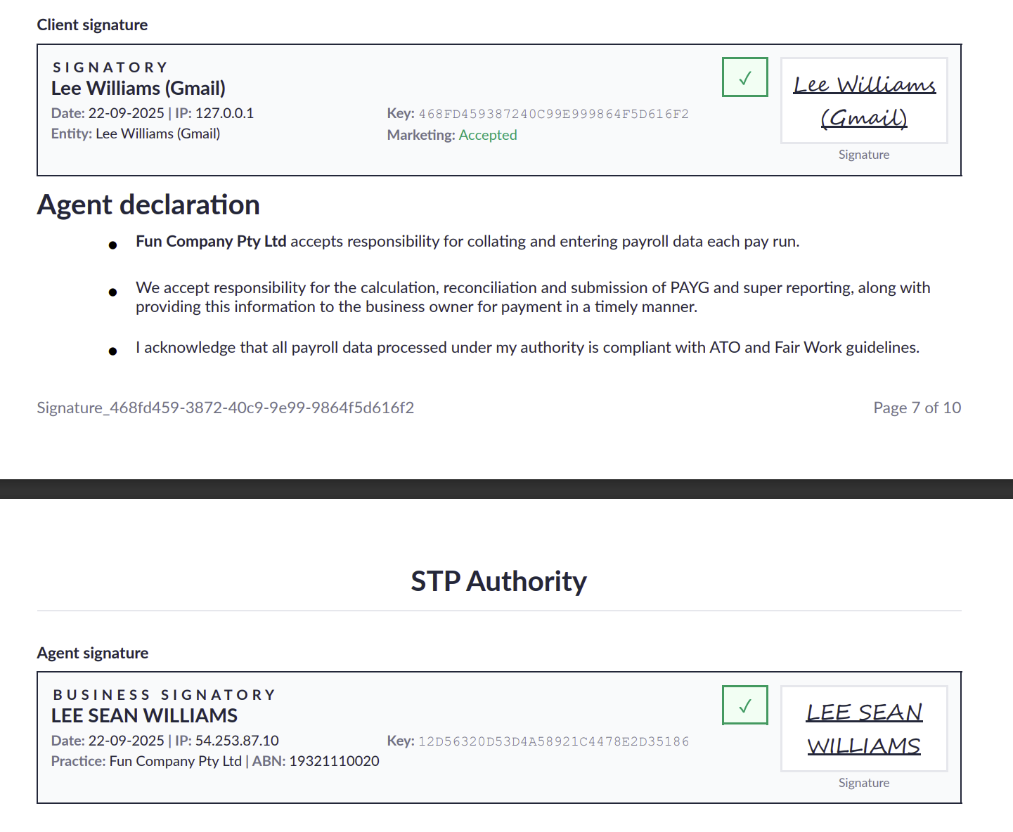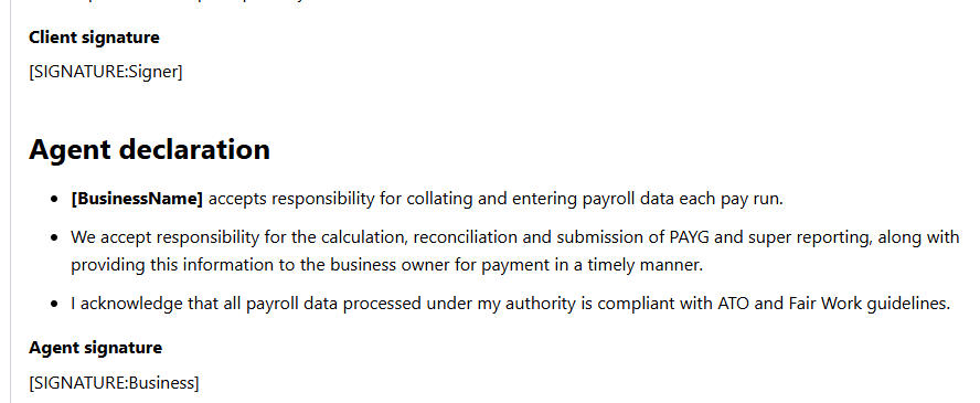NB: The Business Signatory will not be requested to sign the document, sending the engagement is the consent required to act digitally for this engagement.