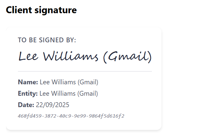 Note: If more than one signature is requested in the Engagement, multiple Client Signature boxes will be displayed.