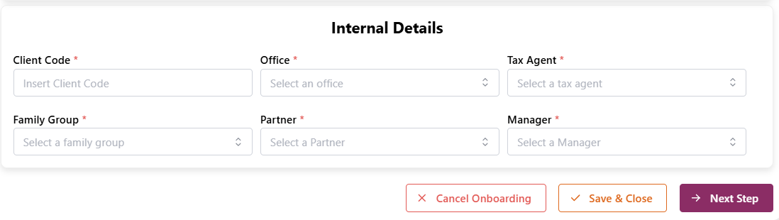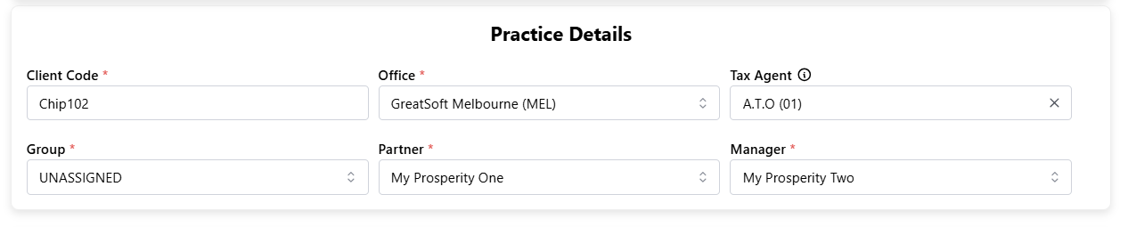 For customers using MYOB Practice Management, we have added validation for the Client Code, Office, Tax Agent, Family Group, Partner, and Manager fields, as these are required to create a new client in MYOB.