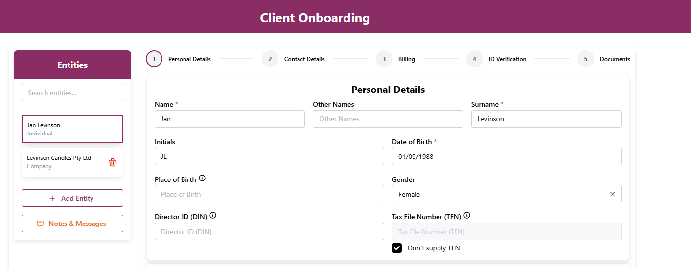 When onboarding an individual, firms that are set up as Bookkeeping only will no longer see the Bank Details step in the onboarding wizard.