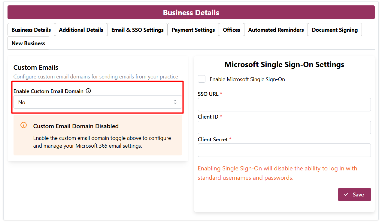 ⚙️ Configuring the custom email settings will require assistance from your IT team.